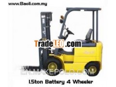 New Baoli Battery 4 Wheeler, Capacity 1. 0, 1. 5 & 1. 8 ton @Load Center 500mm. 2 or 3 stage mast wNew Baoli Battery 4 Wheeler, Capacity 1. 0, 1. 5 & 1. 8 ton @ Load Center 500mm. 2 or 3 stage mast with Lifting Height from 3. 0m (9. 8ft) to 6. 0m (19. 7ft) . Fitted with reliable GE DC Controller or Euro AC Controller, Hydraulic Smooth Power Steering. Clear LCD Meter and High Capacity Traction Battery. Most Cascade Forklift Attachment applicable!